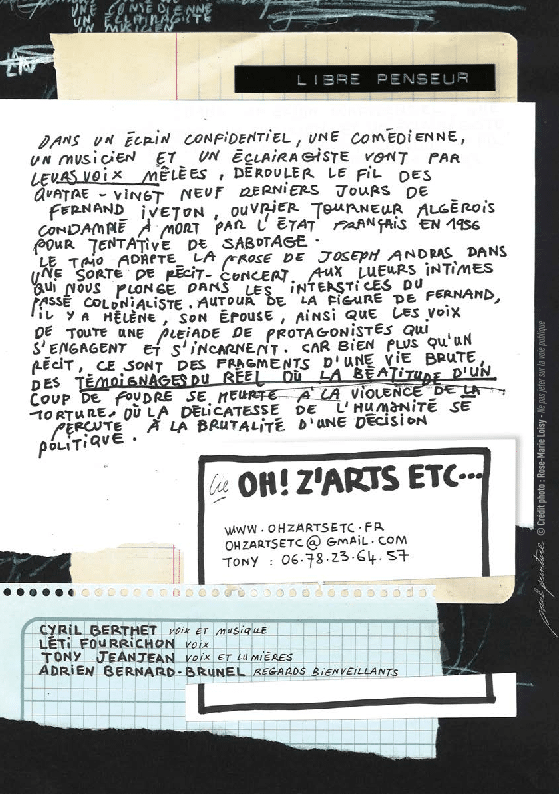 Retrouvez nous à la brasserie pour ce récit concert immersif proposé par la compagnie OH! Z’ART ETC…
